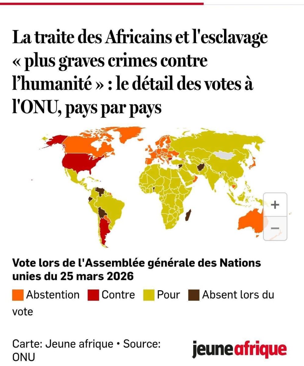 Le 25 mars 2026, les Nations unies, par une déclaration solennelle de son assemblée générale (AG/12755), adoptent une résolution historique : celle qualifiant l'esclavage et la traite transatlantique des esclaves africains de «plus grave crime contre l’humanité ». (cf. lien n°1).